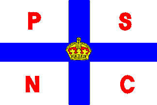 in the centre. The initials 'PSNC' are in the quarters. The flag is made of a