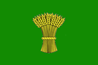 rectangular flag with a red saltire. There is a white shield in the centre with