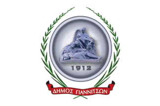 The former flag of Giannitsa (Kokkonis website) was white with its logo, commemorating the Battle of Giannitsa (1912).