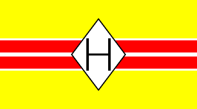 As communicated by the company, the house flag of Hind Maritime Enterprises is horizontally divided yellow-red-white with a thin horizontal white stripe in the middle and a white diamond outlined in black and charged with a black "H".