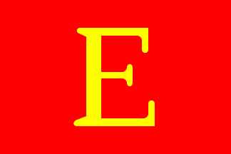 The company was located in Hong Kong. In a blue flag is a yellow disc containing connected blue capitals "E" and "A" with their left line in common.