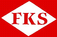 Shown as a drawing on the site, the house flag is red bearing a white diamond touching the flag’s edges; in the diamond appear the serifed company initials "FKS" in red.