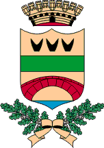 Before the adoption of its modernized coat of arms, Barban used a more traditional representation of the coat of arms, topped with a golden civic crown and with two oak branches tied with a golden ribbon below.