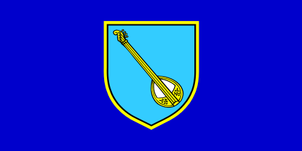 The coat of arms is "Azure a tamburica or and argent bendwise".