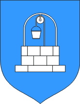 One proposed coat of arms is divided per bend by a spiral division azure and argent and the other is azure a well argent. Each is accompanied with a flag proposal, being a banner of the arms, in proportions 5:8.