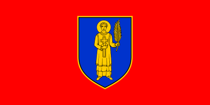 As the flag and coat of arms were not in accordance with Croatian heraldry, they decided to change it and here is the result. The flag is red with a yellow bordered coat of arms in the middle.