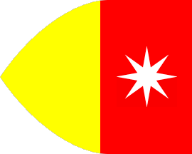 The 2005 Spanish illustrated transcription of the "Book" [f0f05] shows for "Esclavonia" a vertically divided flag, red at hoist with a small, white eight-pointed star in the middle, and yellow at fly; the flag is shown in the ogival default shape of this source.