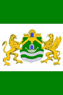 Image on top is based on the Res. No. 2/1999 (I.29.) of the district.  Coat of arms from Ralf Hartemink site . The ceremonial flag is on the resolution: green-white-green and the common flag is only white!