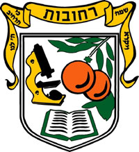 Keywords: rehovot | rekhovot | iriyat rehovot | scroll (white) | text: hebrew (red) | text: english (red) |