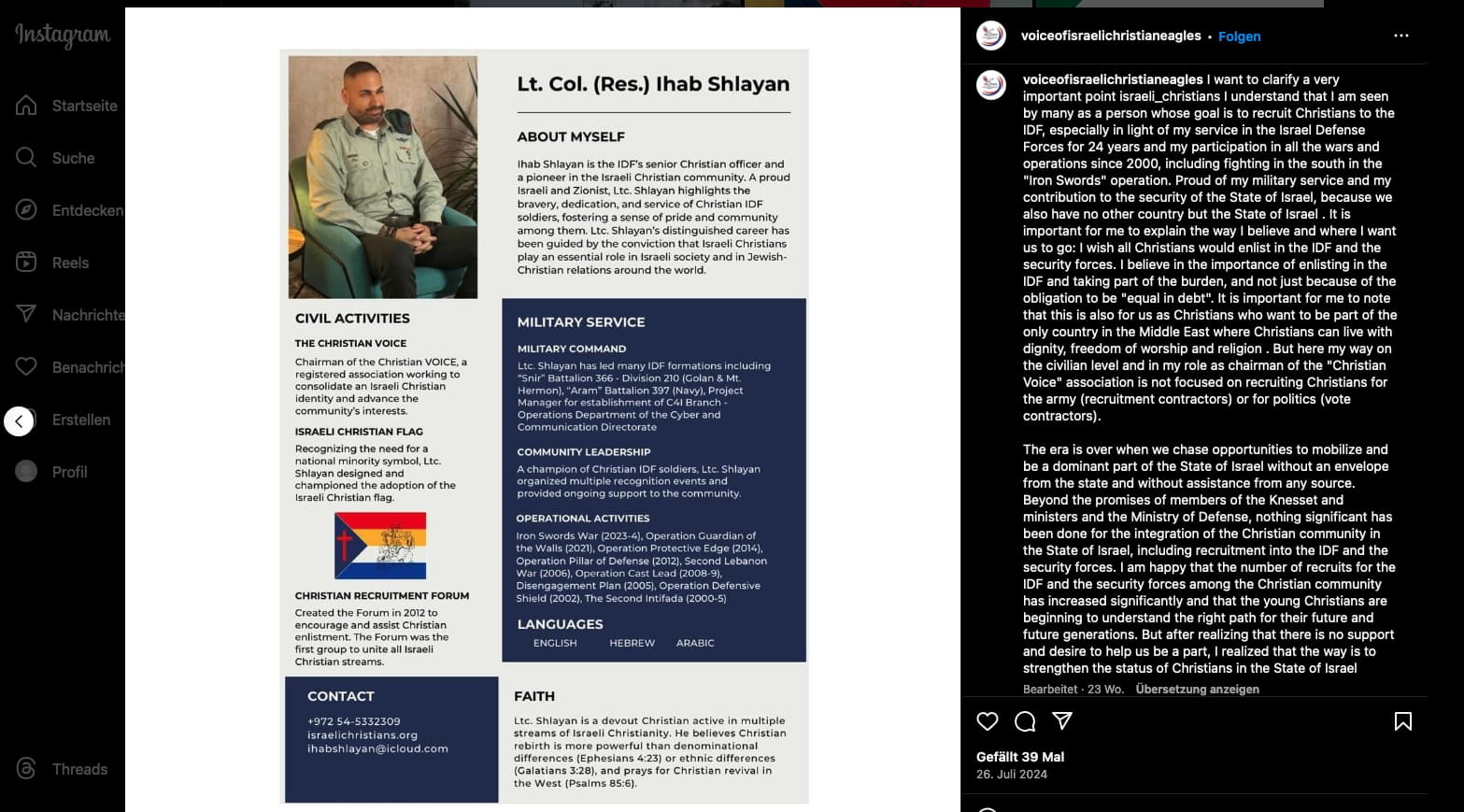 • Information about "Voice of Israeli Christian Eagles": https://www.instagram.com/p/C89-WJcNCe4/?img_index=1 (picture)