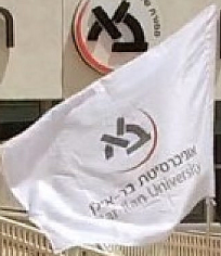 Flag of Bar-Ilan University which is a public research university in the Tel Aviv District city of