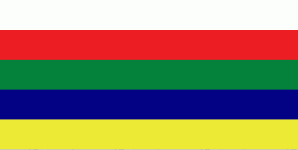Flag#1: The ratio is 1:2. It is a red over white over light pale yellow (y--) over green over dark blue (b+) horizontal 5-stripes flag.