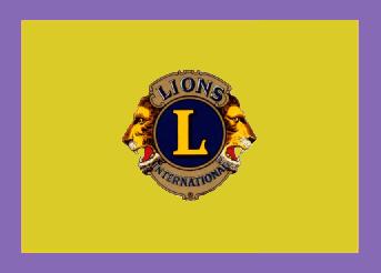 A white flag, with a yellow border, 3 x 5 dimensions (sold as 3 feet x 5 feet), bearing the Lions emblem. Other flags are shown on the same web page as shown below.   The various flags are used by the International Association of Lions Clubs. The indoor flag is shown in yellow, and allegedly there are other colors as well, according to the accompanying information. I myself have only seen it in yellow and blue, however.