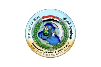 The flag of Ministry of Labour and Social Affairs of Iraq is white with the logo centered.