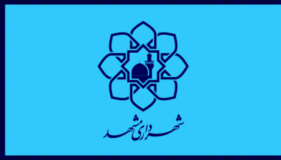 The flag of Mashhad is light blue with logo and dark blue fringe: