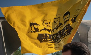 A flag bearing the portraits of Iran's Supreme Leader Ayatollah Ali Khamenei, the late Iranian military commander Qasem Soleimani, and Lebanon's Hezbollah leader Hassan Nasrallah, during a funeral procession, for Soleimani and nine others, in Kadhimiya, a Shia-Muslim pilgrimage district of Baghdad, Iraq, on January 4, 2020. At the time of the parading of this flag, Khamenei was still alive, Soleimani had been killed just the day before on Jan. 3, and Nasrallah would live another four years until being killed on Sept. 27, 2024. - AFP