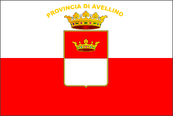 from <www.governo.it>: "BANDIERA: drappo troncato di bianco e di rosso, con lo stemma della Provincia attraversante; sopra la corona, la scritta centrata, in lettere maiuscole d'oro, Provincia di Avellino".