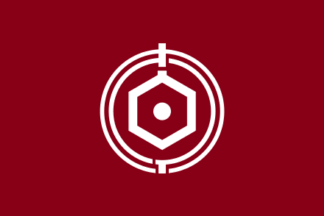 The flag of the town of Shiraoi is maroon with mark.