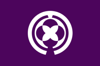 The town emblem was adopted on Feb 3rd 1981 by Notice No1 but there is no flag law. The purple flag has a white town emblem in the center. The town emblem is a stylized kanji 上 Kan of Kanmaki. The flower petal in the center which is a combination of a fern pine leaf and a clover leaf symbolizes a wish for an extension of the governmental agency and the eight leaves do a happiness, some kinds of occupations of the residents and an importance of the town administration.