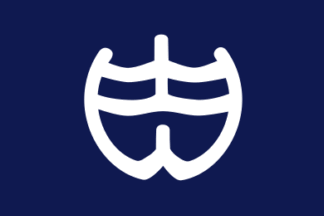 The flag of the former town of Shinji was blue with mark. The town is now, from 2005, part of the city of Matsue.