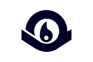 The flag of the former town of Mihonoseki was blue and white diagonally divided with mark in the canton. The town is now, from 2005, part of the city of Matsue.