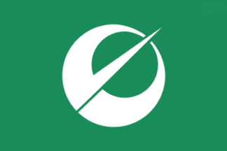 The flag of the former town of Shirokawa was green with mark. The town is now, from 2004, part of the city of Seiyo.