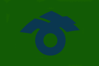 The flag of former town of Mine was green with mark. The town is now, from 2005, part of the town of Miyaki.