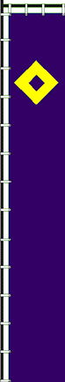 Adopted son of Tokugawa Ieyasu. He became the lord of the Koriyama domain in Yamato Province (120,000 goku) and the Himeji domain in Harima Province (180,000 goku) in 1639. The war banner has dark blue background with a gold washer part of old nail puller.