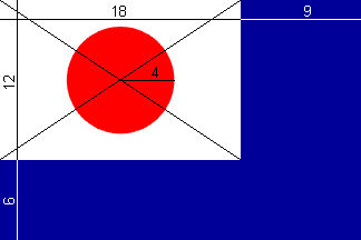 The overall proportion is 2:3 same as national flag; the construction itself is a bit different from national flag. The diameter of sun-disc is 2/3