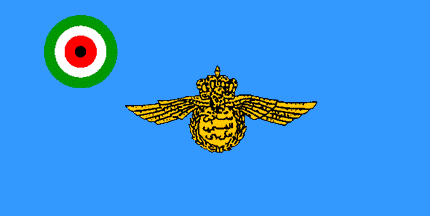 In the 1970s, the Air Force adopted a light blue flag with a yellow emblem an a quadricolor (black-red-white-green) roundel in the center.