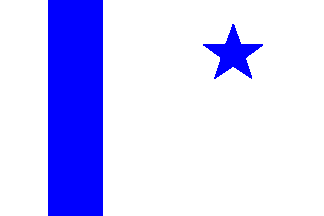 hoist a vertical blue stripe; in top fly a blue 5-pointed star.
