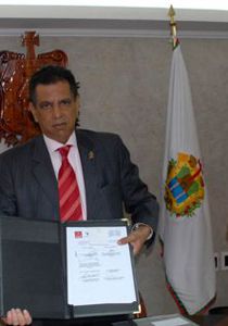 headquarters in Xalapa, depicts in the background to Veracruz-Llave newly-elected Governor