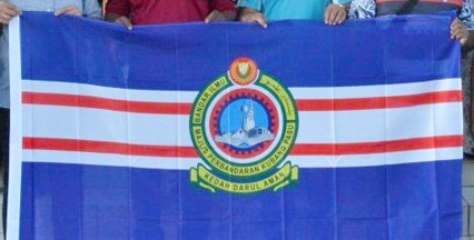 It has a yellow field, and a red canton. On the canton is charged the emblem of Kedah in its proper colours as per the State Flag.
