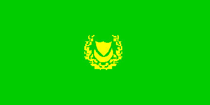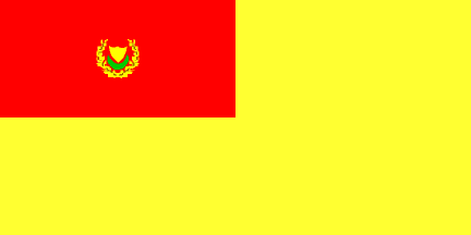 Plain yellow flag with the emblem in the middle. Emblem with green shield and garland and red crescent. Source: Flaggenbuch 1939 [neu39].