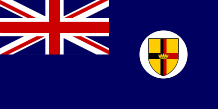 • Union Flag, badge on a white disc surrounded by a laurel leaf garland. This was the flag of the Governor. The badge was a yellow shield with the same bi-coloured cross and the same style crown in the centre of the cross.
