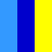 Square vertical tricolour of light blue-dark blue-yellow. Source: Album des Pavillons 2000