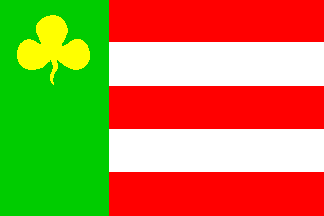 Boarnsterhim: a square green hoist charged with a yellow cloverleaf, a