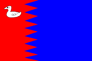 Flag: a red hoist and a blue fly; the division-line is edged; in top hoist