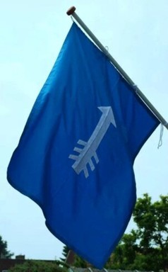Photo of the previous flag from 2000, which has a white (silver) arrow on a