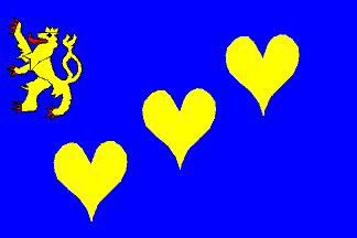 three yellow hearts, each of 1/3 flagheight; in hoist-top a yellow double-tailed