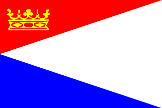 Flagdescription: Two stripes of red and blue and a white fly-triangle,