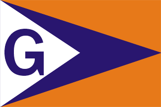 The Dutch firm De Gerlien-van Tiem, a (repairing) shipyard is very much present on the Vlootschouw pages, the company logo shows an orange four-bladed screw dipping into three blue waves, see – for instance – the page about the tanker vessel ‘Alexia’ and a number of photos indeed shows the flag, but never very clear. Luckily there is eBay, as such a flag was offered on the French section in May 2005, item no. 6182516780, on which this image was based.