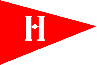 Flag: red burgee, white stylized "H".