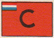 tiny national flag in the canton and large black initial ‘C’ in the centre