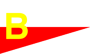 Rederij Boeke: an horizontally divided white-red pennant with a yellow B all over