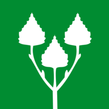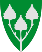Blazon: I grønt en oppvoksende sølv bjørkekvist med tre blader. Vert a birch