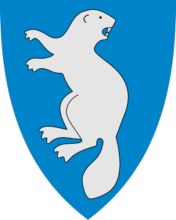 Blazon: På blå grunn ein oppreist sølv bever med hovudet vendt bakover. In