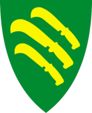Blazon: På grøn grunn tre skråstilte gull lauvknivar. In English: Vert three