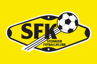 The flags of Steinkjer FK (Steinkjer Fotballklubb) from Steinkjer are yellow with the logo centered.