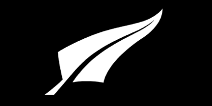 This flag is white at hoist, black to the fly, in proportion 1:2, coming together as two spirals, black from the top and white from the bottom. The black arm ends in a circle, forming a koru or unfurling fern frond. Symbolism: